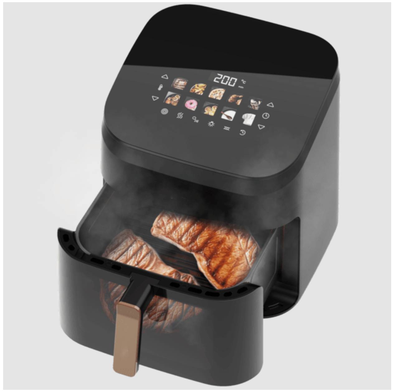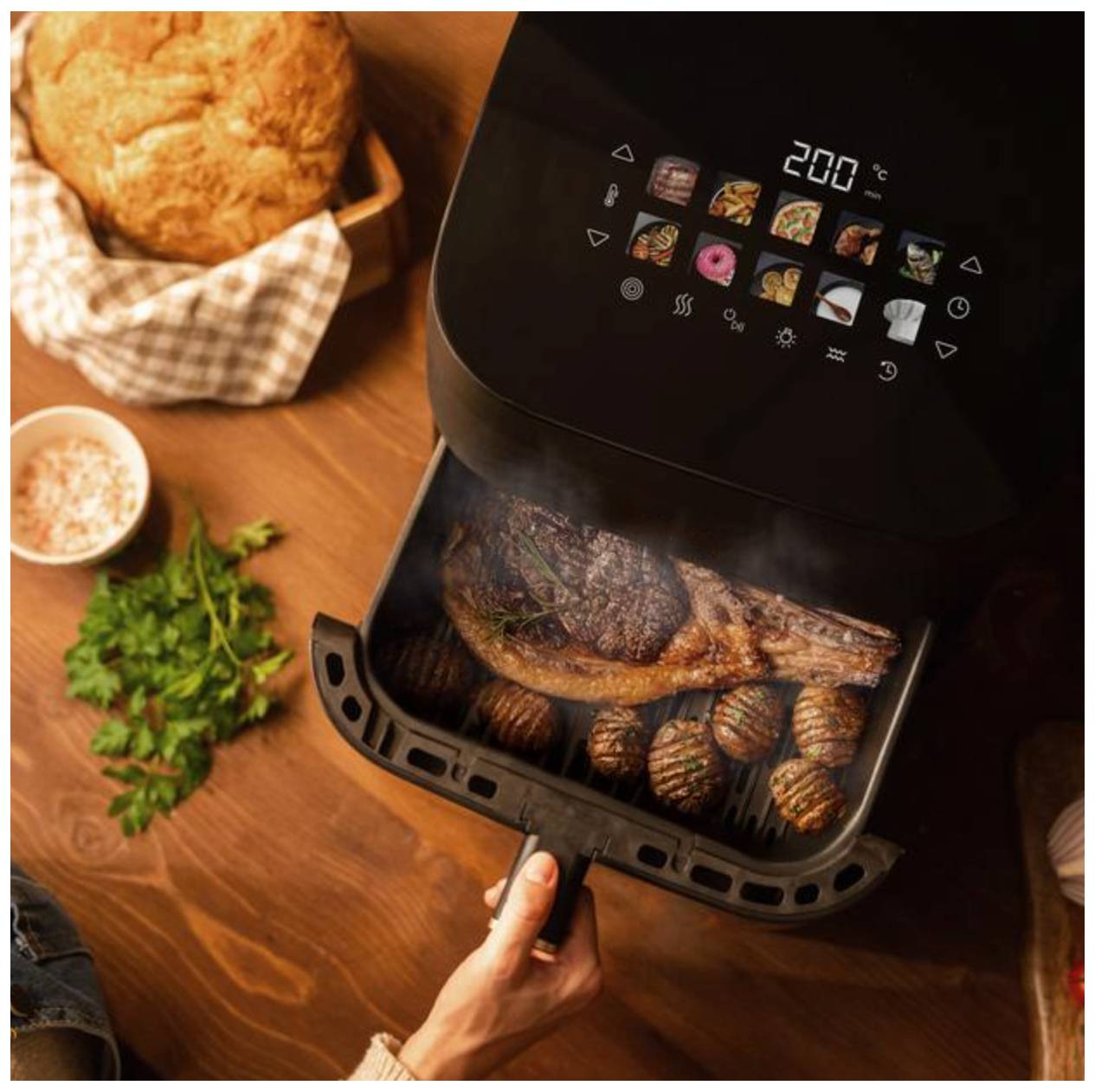 Exact. Într-un singur aparat ai friteuză cu aer cald, cuptor, grătar și afumător. Economisești spațiu și bani.